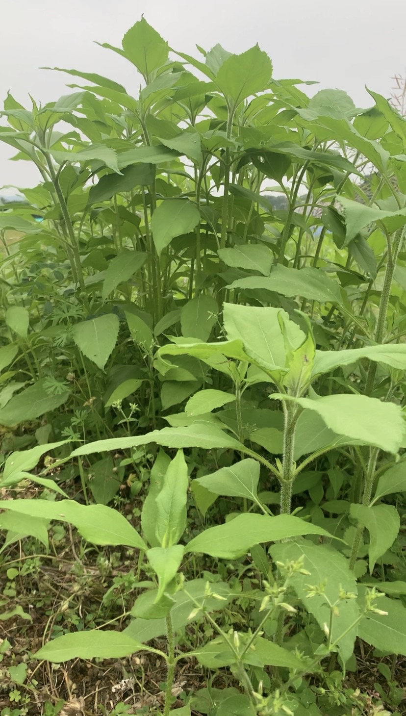 菊芋さん、成長が早い。 花を咲かせる頃には3メートル近くになります。