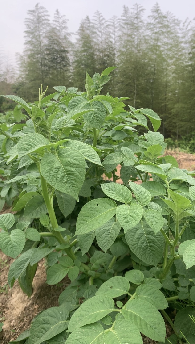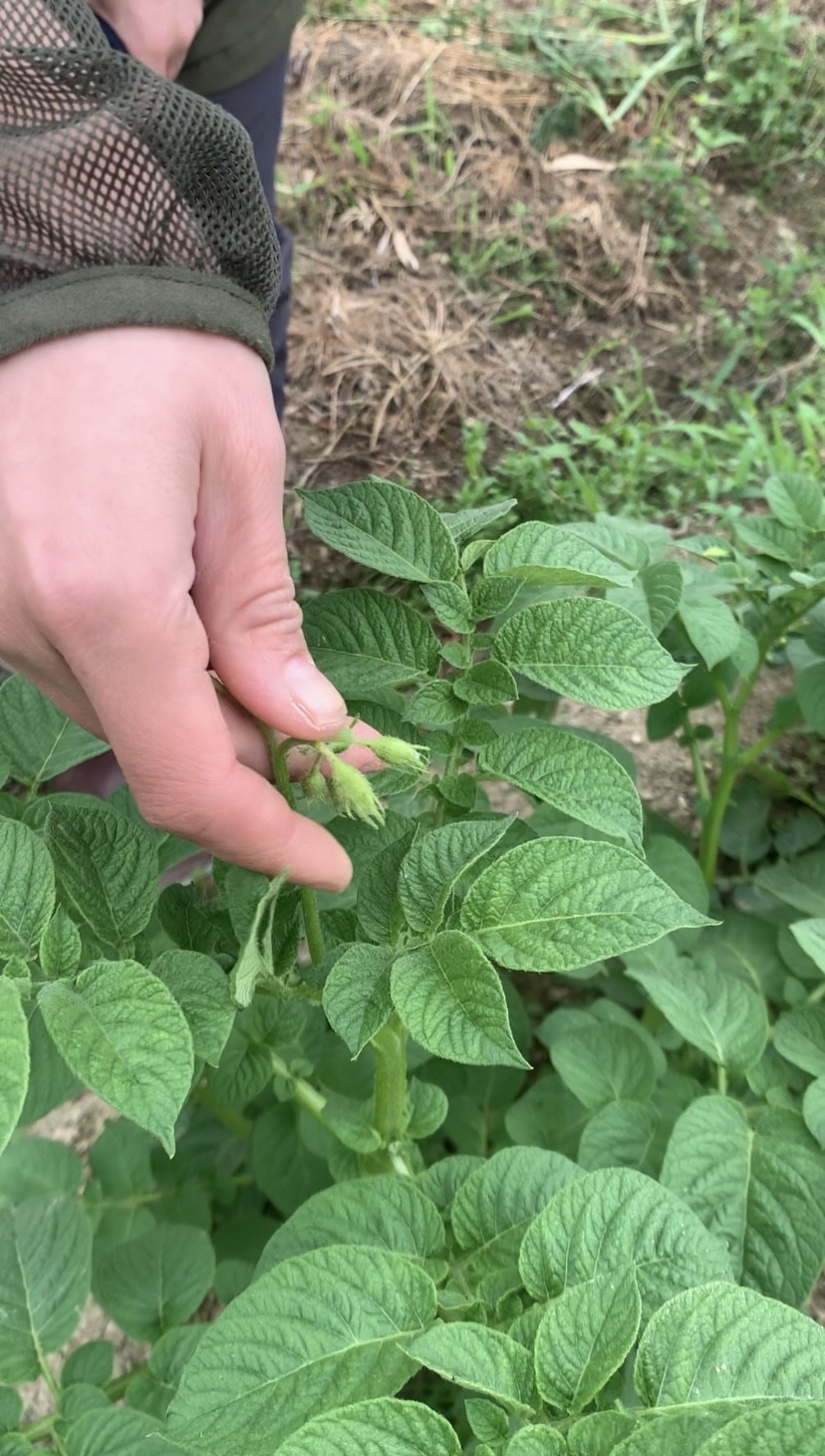 このジャガイモ(デジマ)は昨年の春、秋と繋いだ種芋を植え付けました。粘土質の土は上に上にエネルギーが昇るため、自然農の場合は特に蕾や花を摘んであげて、できるだけ土中の実にエネルギーが回るようにします。