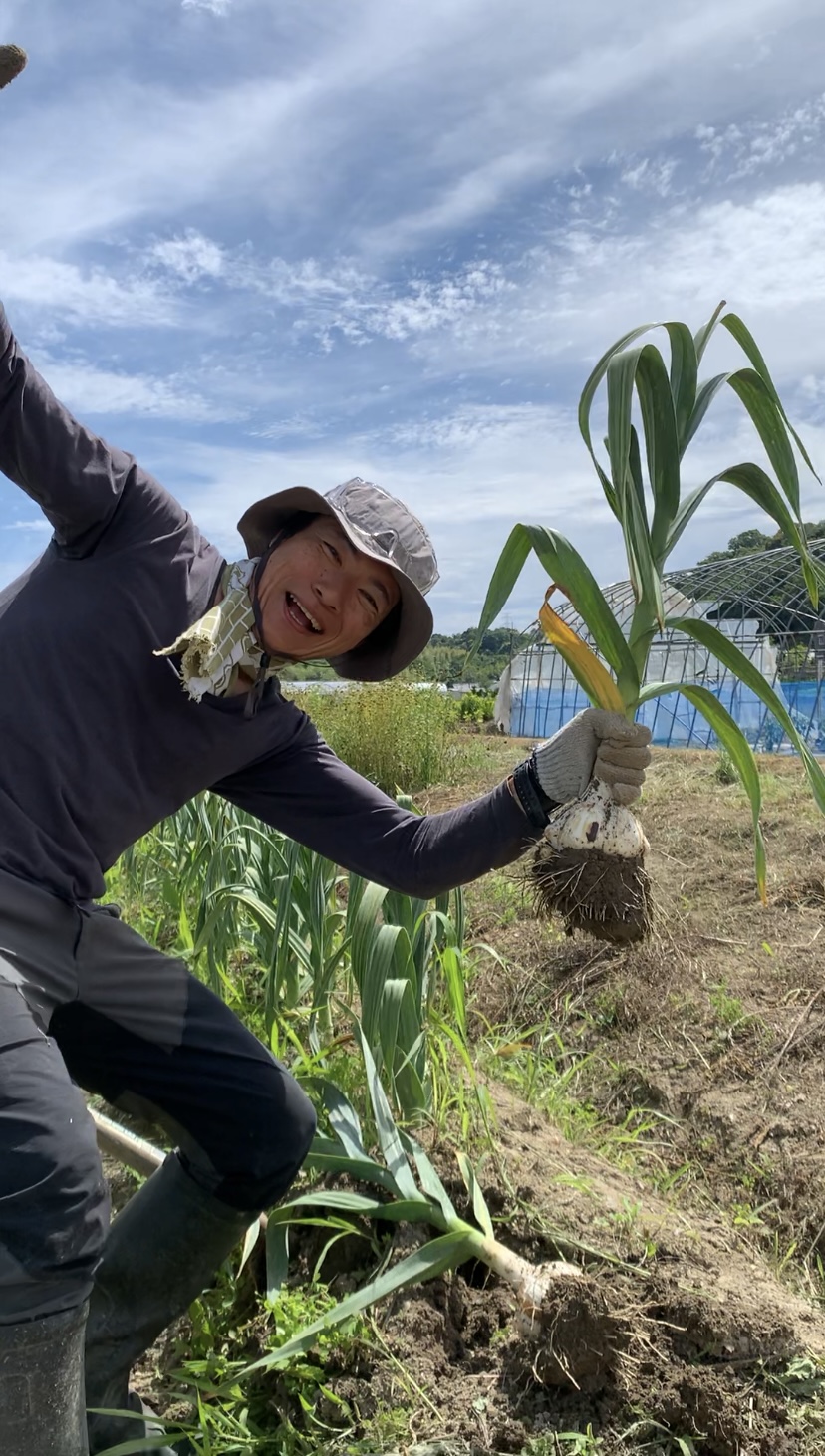 ももタケ自然農縁のジャンボニンニクも単品野菜として注文できます🧄✨6月上旬、収穫の様子↑