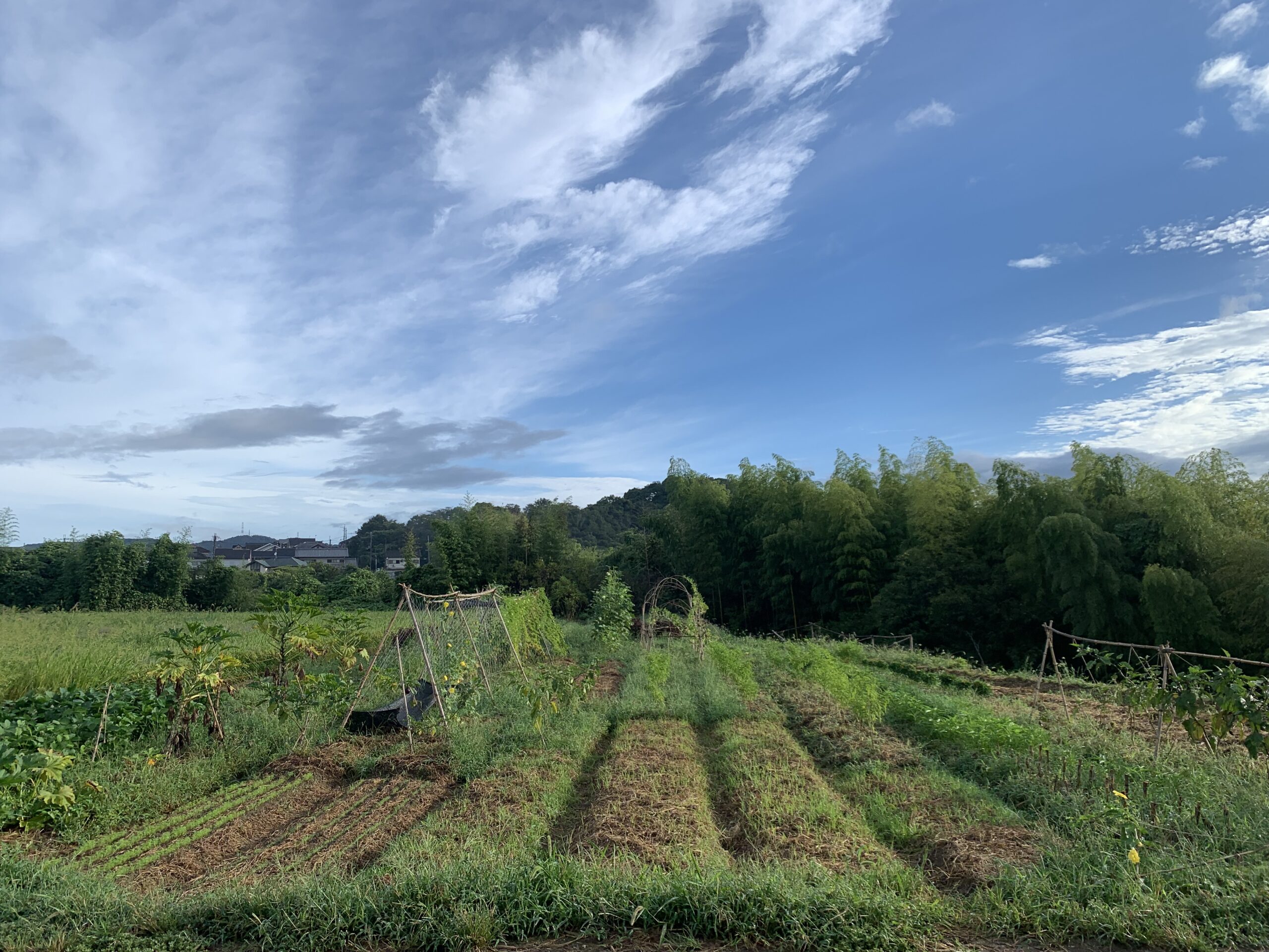 この畑(タマ)に約25品目、対面のもう一つの畑(ワカ)に8品目ほど、これから秋冬野菜を15品目ほどを作付け予定です。