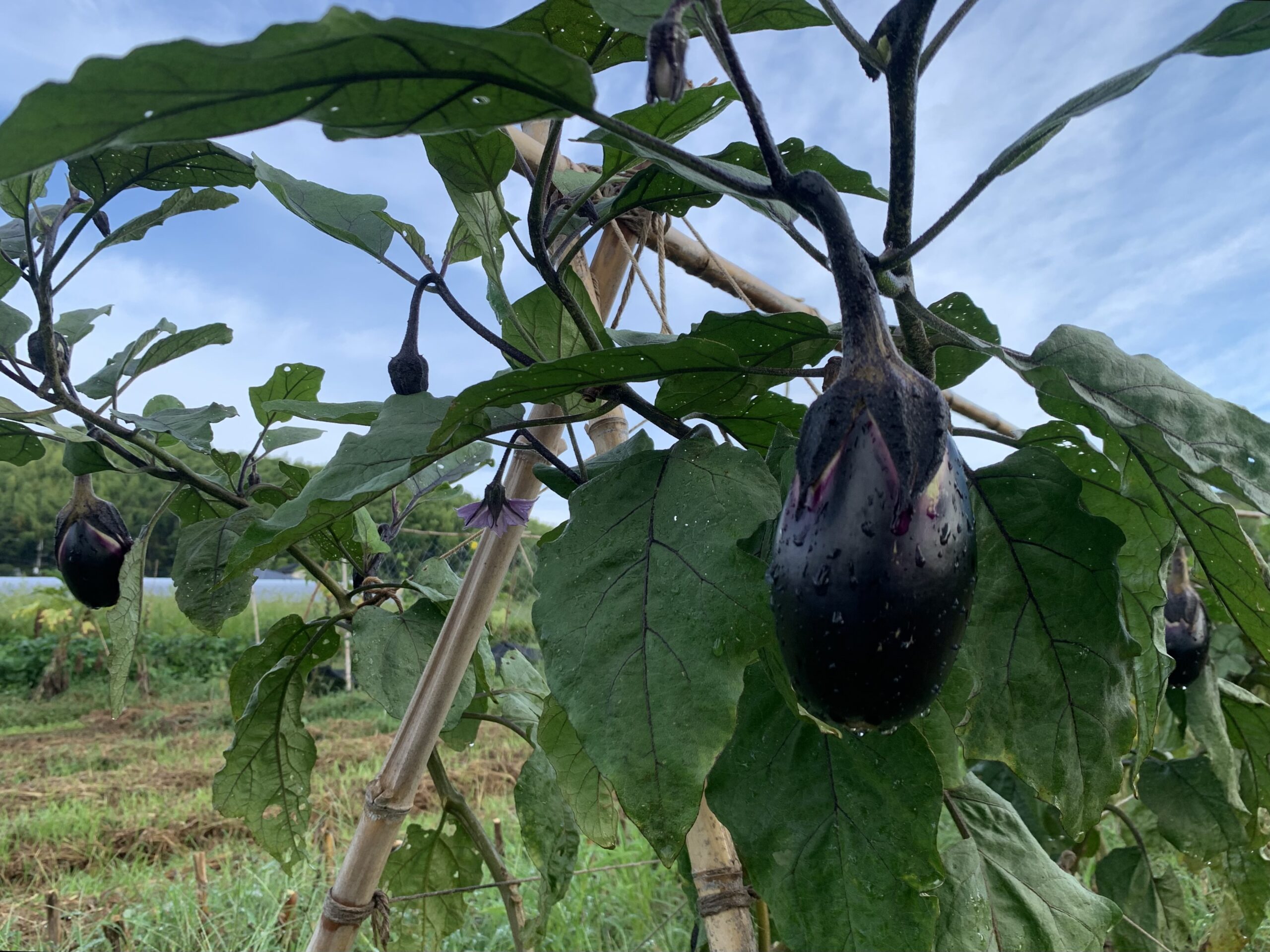 猛暑に耐えて元気に育ってくれているナスたち。