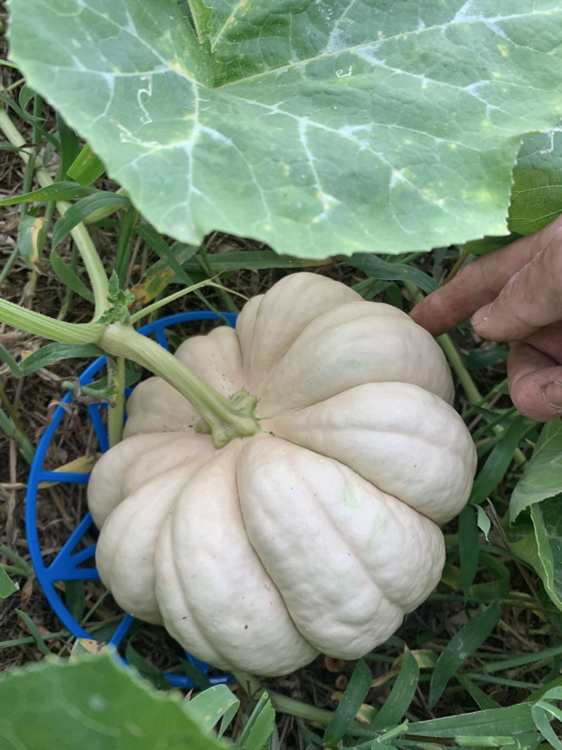 『白皮砂糖南瓜』という日本カボチャ。菊のような形、熟すと黄褐色になる。