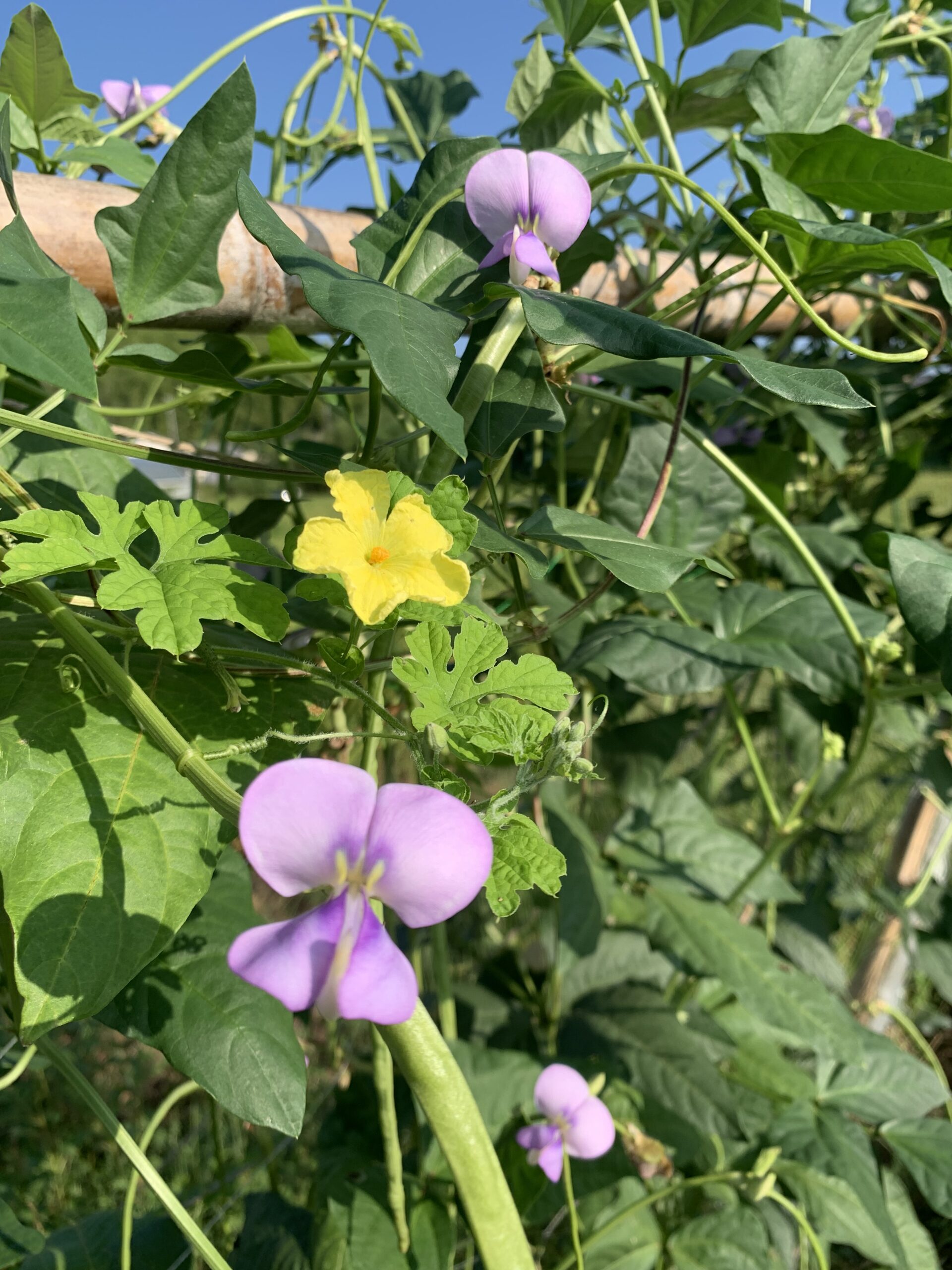 ささげとゴーヤの色合いが素敵。