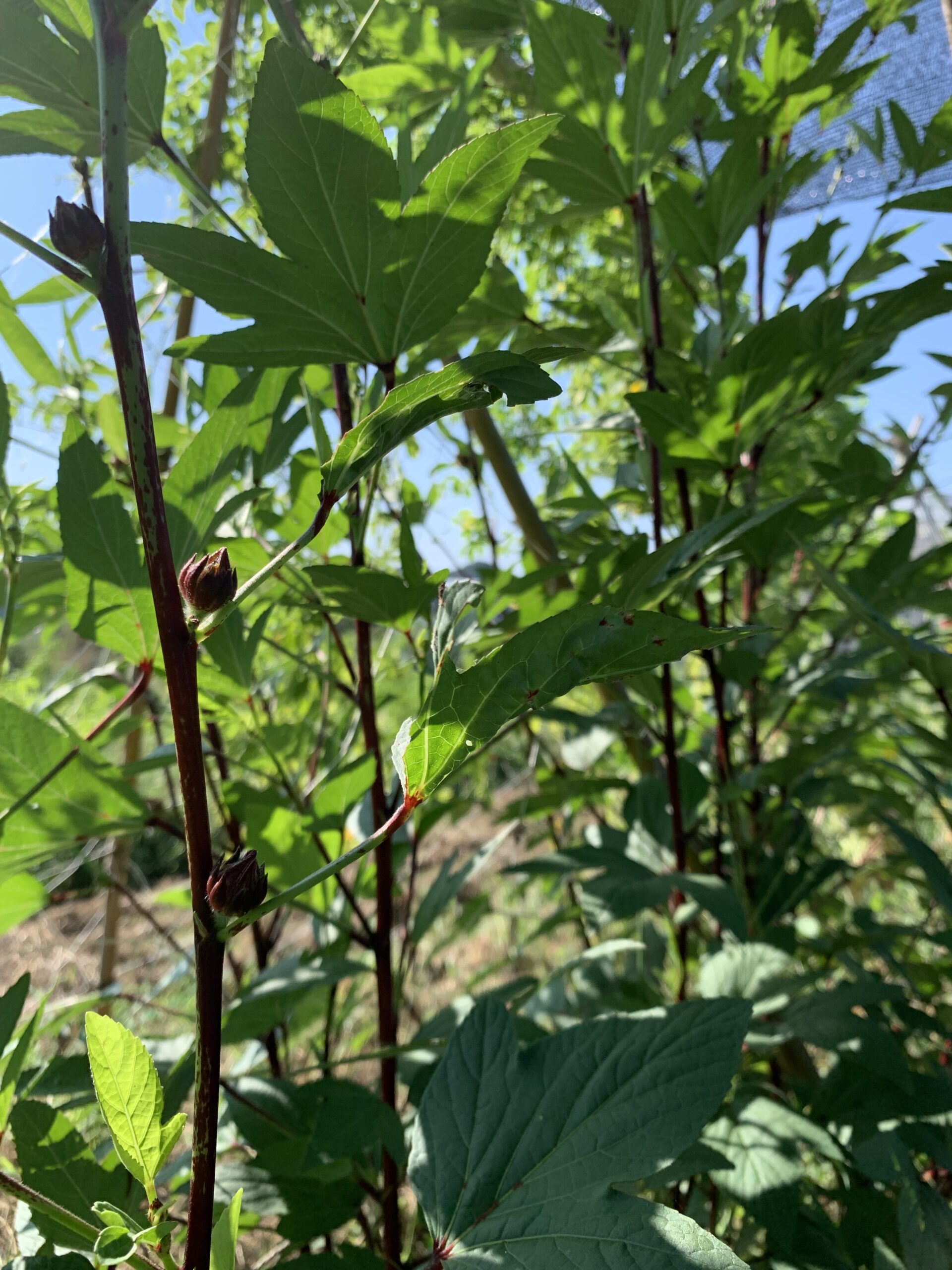 ジャムやティーなどで人気のローゼル。花を咲かせ実をつけて膨らんだら収穫。